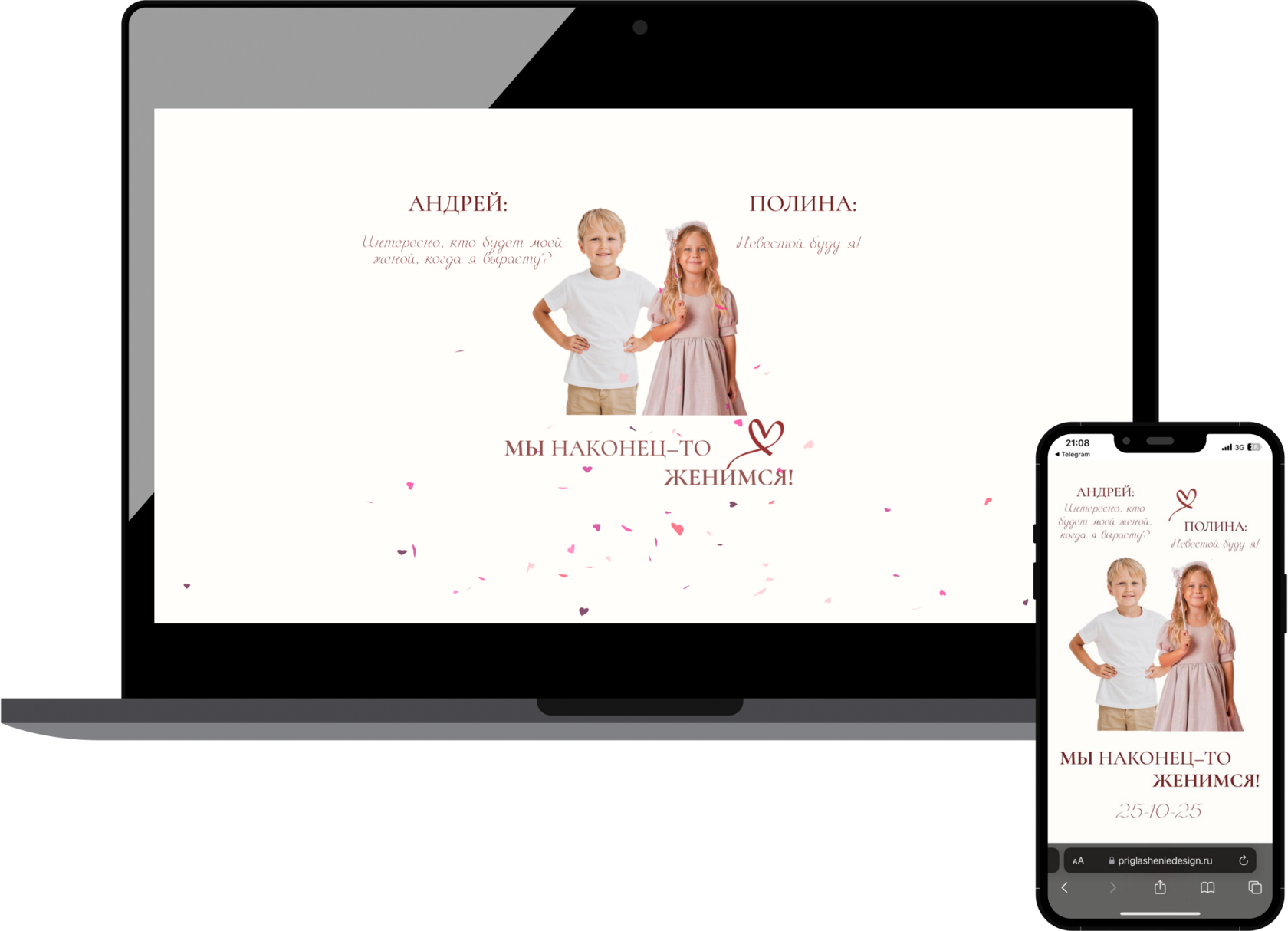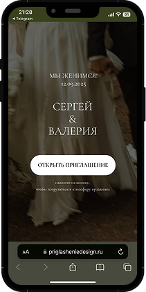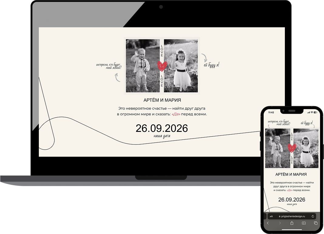 Ссылка на приглашение будет работать с момента создания - до вашего торжества и месяц после. Возможно продление - 300 р/месяц.
